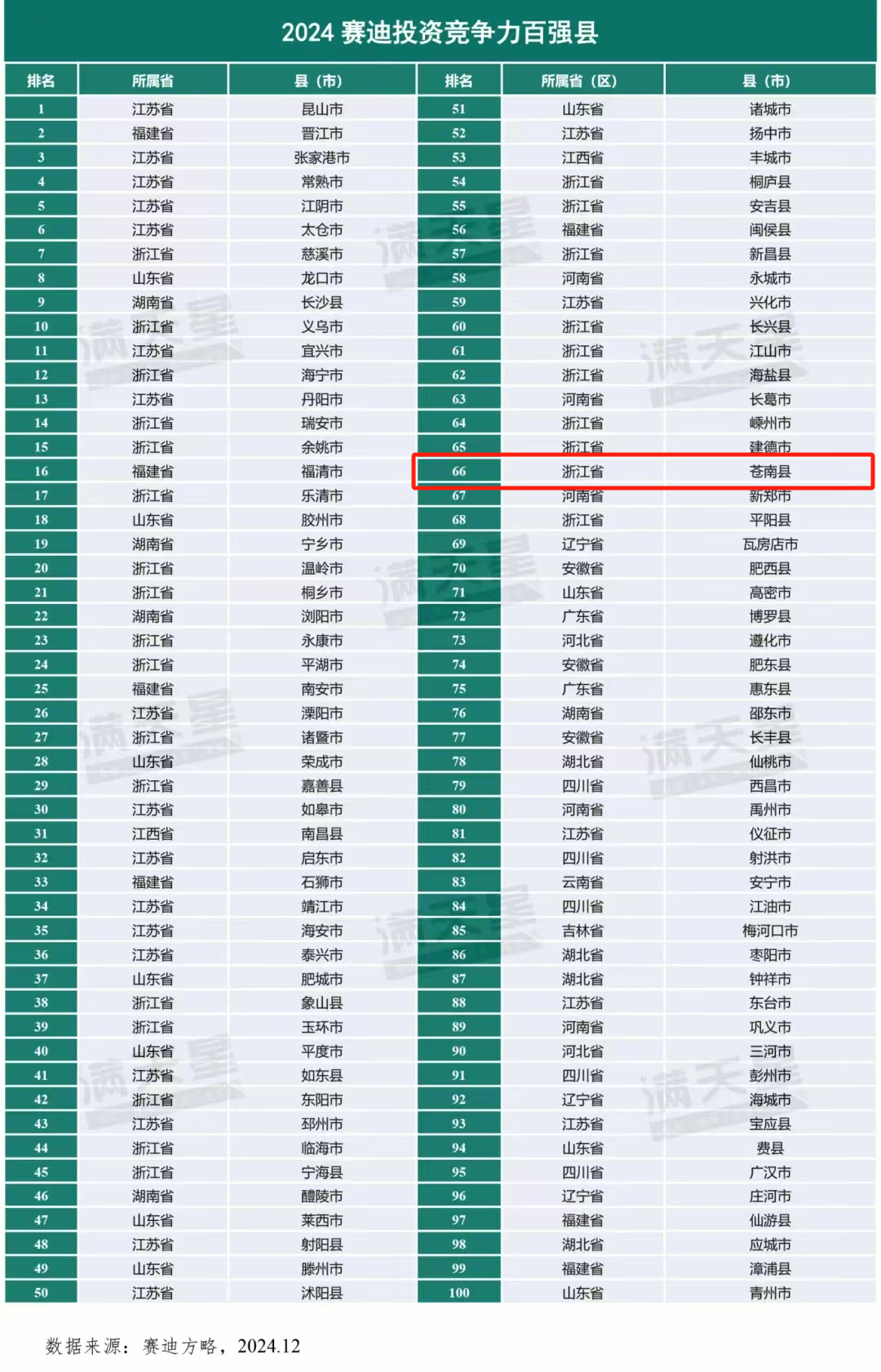 2024赛迪投资竞争力百强县,从引领力、集聚力、改革力、支撑力、可持续力五个维度入手,系统评价县域投资活力、要素吸引、服务效能、设施完善水平和生态品质等综合水平。以全国(不包括香港特别行政区、澳门特别行政区、台湾地区)除市辖区、特区和林区以外的1865个县级行政区划单位为研究对象,设置“双门槛”(GDP≥400亿元,一般公共预算支出≥40亿元),对符合条件的县域进行投资竞争力水平综合评价,形成“2024赛迪投资竞争力百强县”。